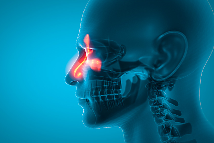 • تشمل أعراضه احتقان الأنف المستمر، إفرازات أنفية سميكة، فقدان حاسة الشم، والشعور بضغط في الوجه.