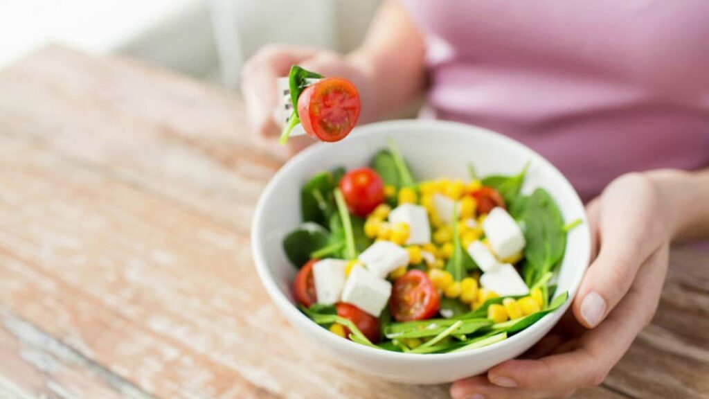 • وجبات الغداء: مثل سلطة الدجاج المشوي مع الخضروات المتنوعة وزيت الزيتون، أو سمك السلمون مع الخضار المطهوة على البخار، وتعد هذه الوجبات من أفضل وجبات تساعد على خسارة الوزن التي توفر العناصر الغذائية الضرورية مع سعرات حرارية منخفضة.