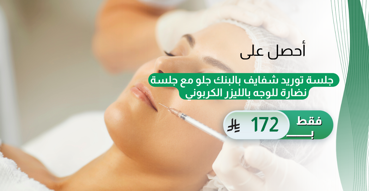 جلسة توريد شفايف بالبنك جلو مع جلسة نضارة للوجه بالليزر الكربوني