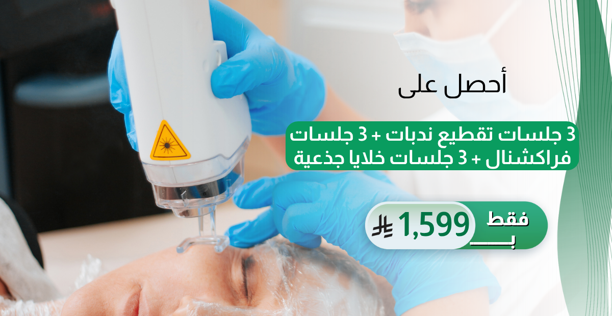 3 جلسات تقطيع ندبات + 3 جلسات فراكشنال + 3 جلسات خلايا جذعية