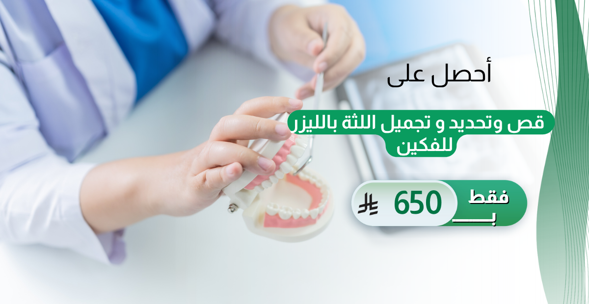 قص وتحديد و تجميل اللثة بالليزر للفكين قص وتحديد و تجميل اللثة بالليزر للفكين + الكشف مجاناً لتشخيص مشاكل الاسنان (تسوسات - حشوات - علاج عصب - ابتسامة هوليودوغيرها ..)