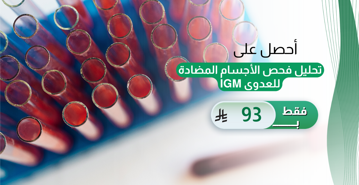 تحليل فحص الأجسام المضادة للعدوى IGM +69 ريال رسوم الزيارة المنزلية