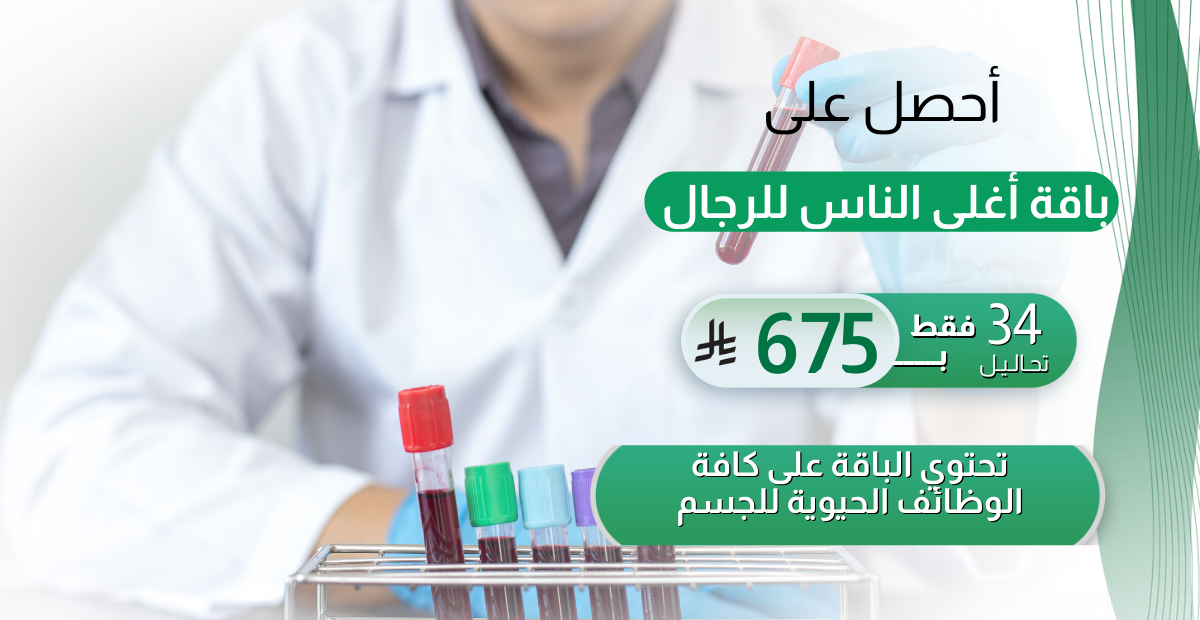 -تحتوي الباقة على (34) تحليل شامل لاطمئنان على كافة الوظائف الحيوية للجسم وتشمل