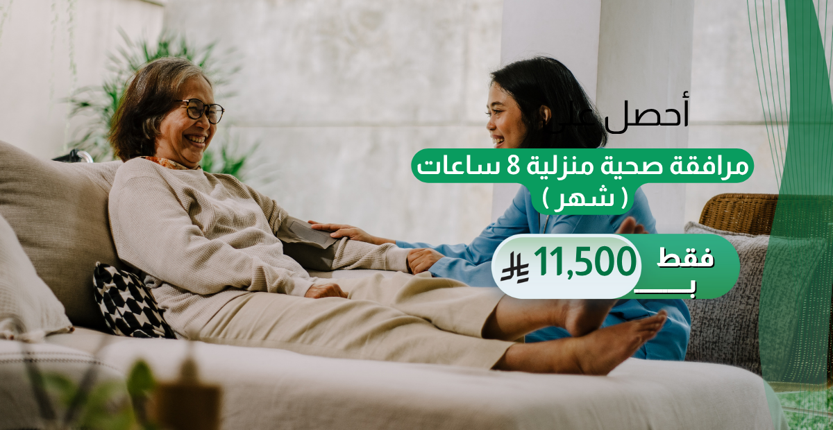 مرافقة صحية منزلية 8 ساعات ( شهر )